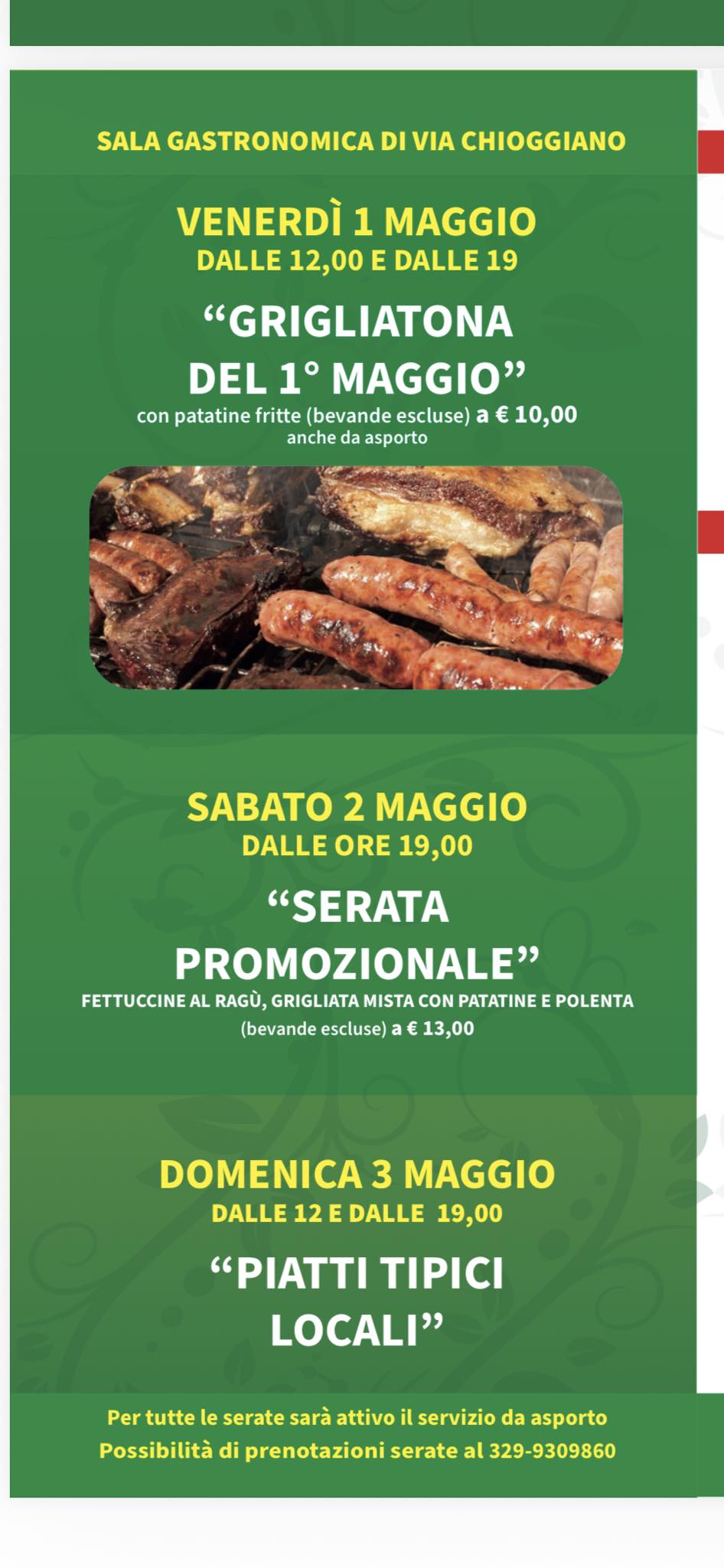 La Sala Gastronomica di via Chioggiano sarà attiva tutti i giorni, con possibilità di asporto.